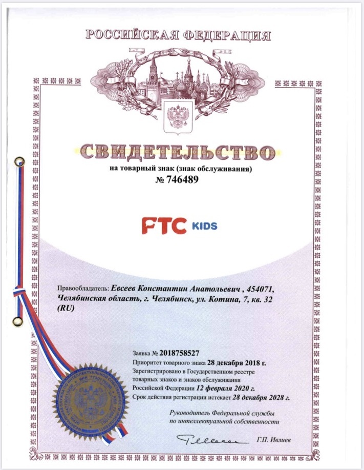 Бренд "FTC kids" имеет юридическую силу, а это значит, что вы можете быть спокойны за сохранность имени своего центра