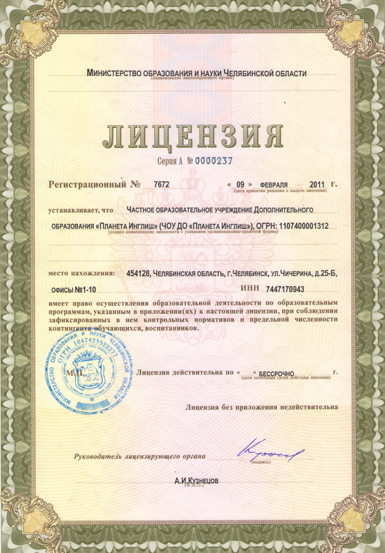 У нас есть лицензия Министерства образования и науки. Наличие лицензии - это гарантия того, что мы оказываем качественное образование в комфортной и безопасной среде.
