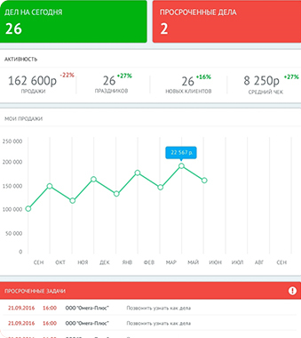 Вы получаете доступ к CRM-системе, которая позволяет контролировать и увеличивать продажи, вести учёт клиентов и сотрудников, а также оптимизировать бизнес-процессы.